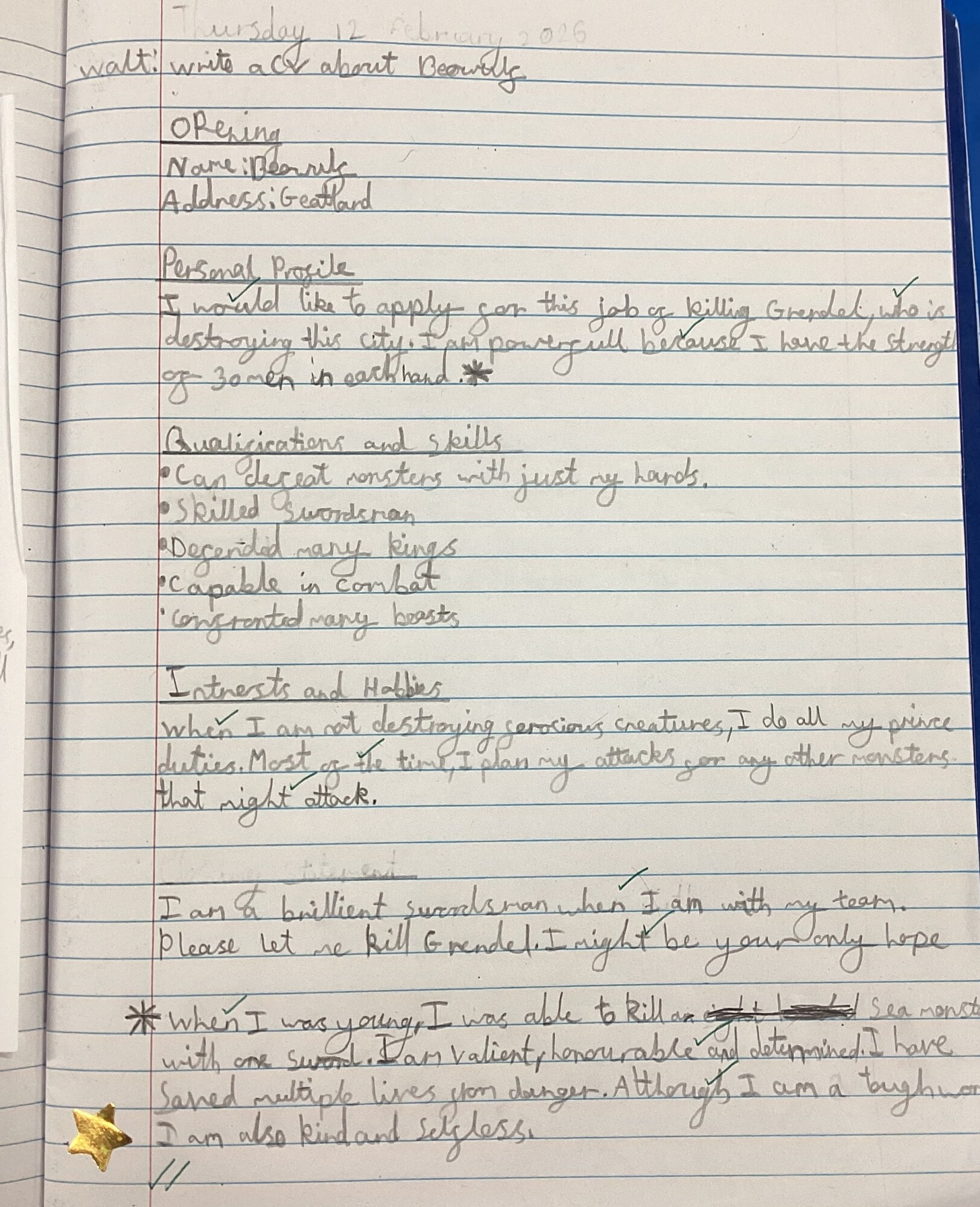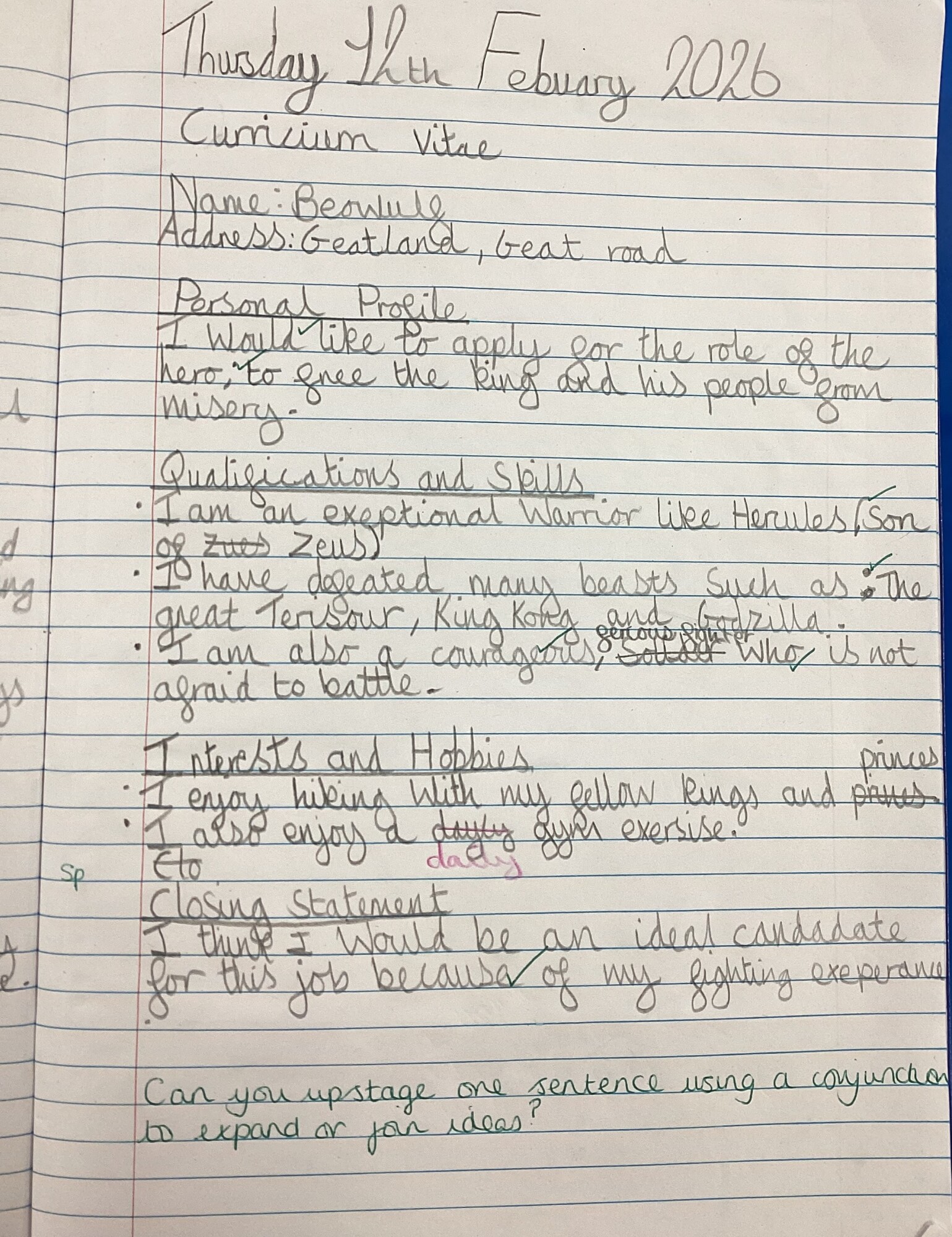 We have been busy writing formal CV’s as Beowulf; we were applying for the job of slayer of Grendel. In Maths, our focus was decimals and their place value. In Science, we finished our forces unit by exploring water resistance. We analysed some data and drew our own conclusions. In Geography, we recapped volcanoes and then made some using paper, tape and plastic bottles. Using bicarbonate soda, vinegar and fairy liquid to create a reaction, our volcanoes erupted! In Art, we started our final piece – water colour painting a volcano in the style of William Turner. We have made a good start and the reflections look really effective. Our last cricket lesson was so much fun – we played a full game to practice all our skills from the unit. We had our final forest school session this week and Mhairi brought in all the equipment we'd need to make fires! We worked together to split kindling, use fire steels to light our tinder and then try to get the flames to catch. It was a bit windy, so it was harder than we anticipated! Once we'd had a go, Mhairi helped to set a larger fire and provided apple slices, lemon and blood orange juice, sugar and cinnamon sugar to drip them in, and toasting forks to cook the apples over the fire. It was very much appreciated! We've had so much fun exploring and building and creating over this term and owe a big thank you to Mhairi and Caroline for leading our forest school sessions! For children’s mental health week, we thought about when we feel happy and when we feel safe. The children were keen to share their thoughts and complete the sentences.