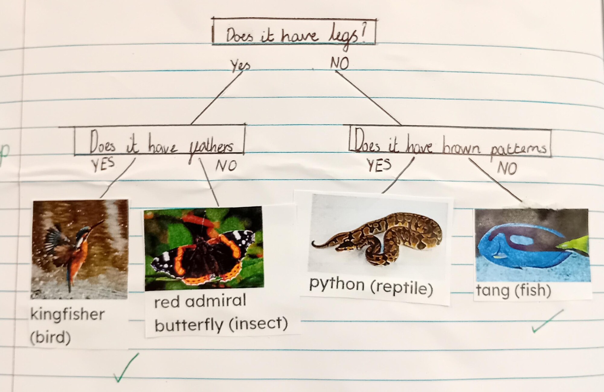 In Science, we focused on how to group animals and discovered that a classification key is a good tool for the job. The children had to apply their knowledge of observable characteristics to help them create their own classification key.