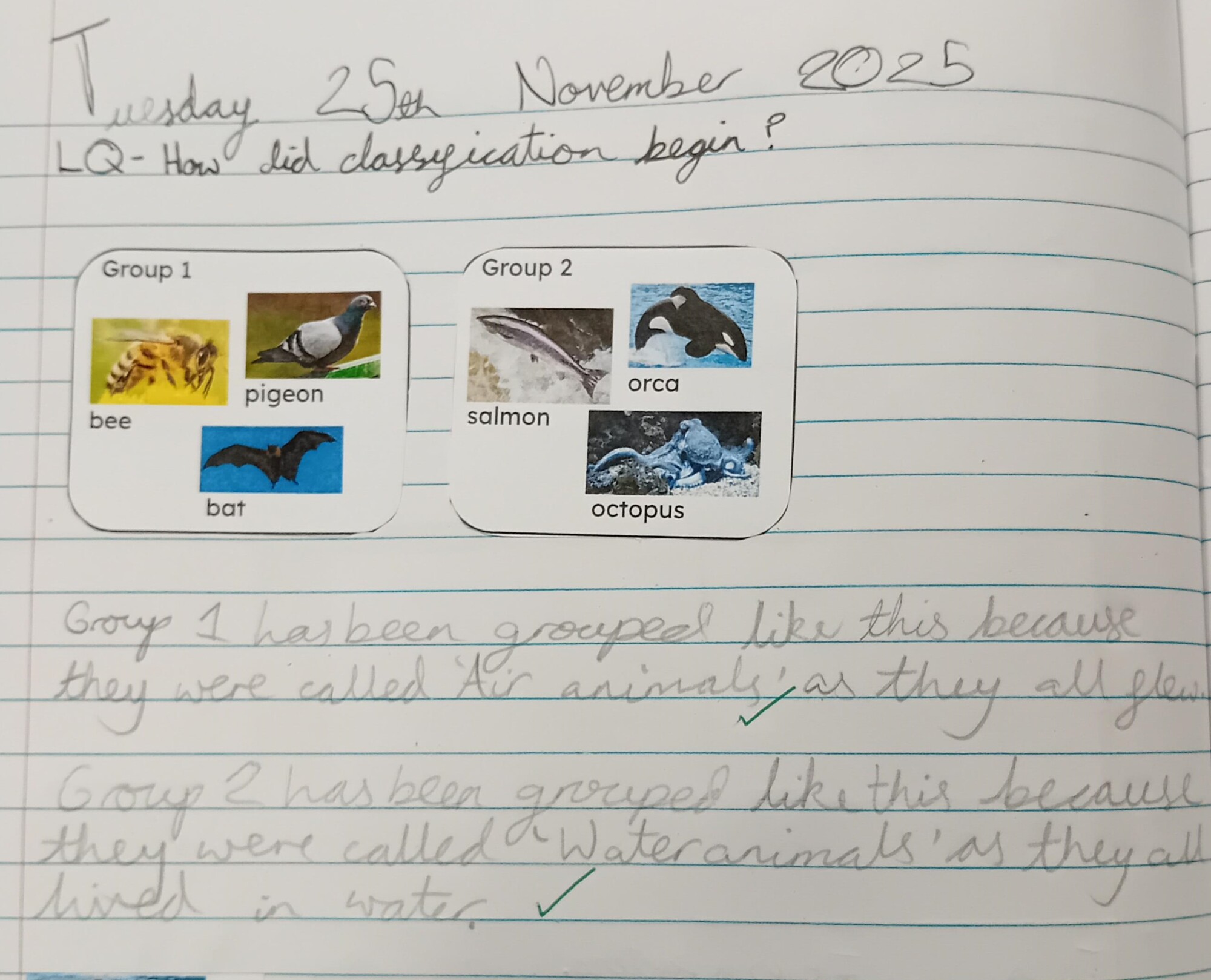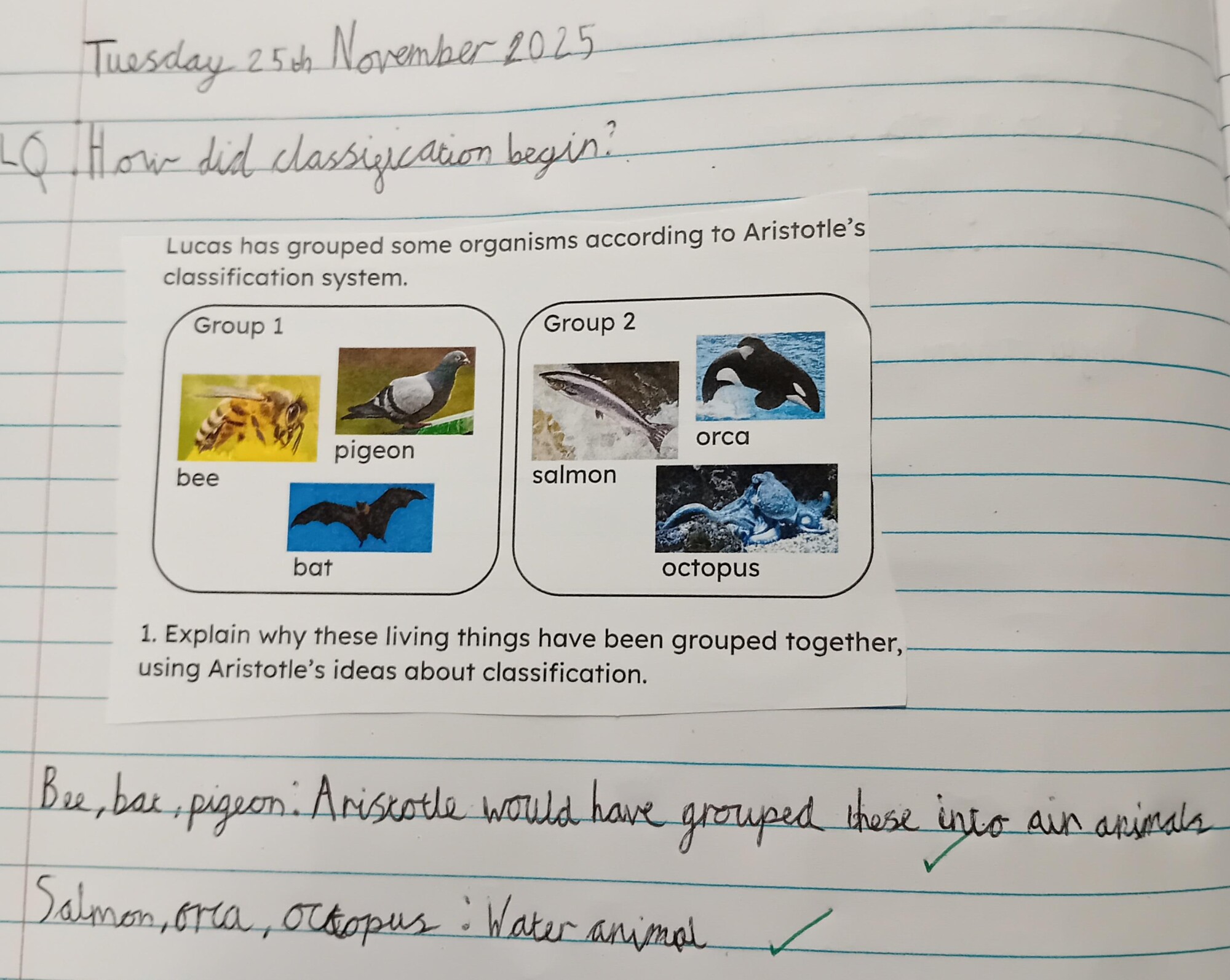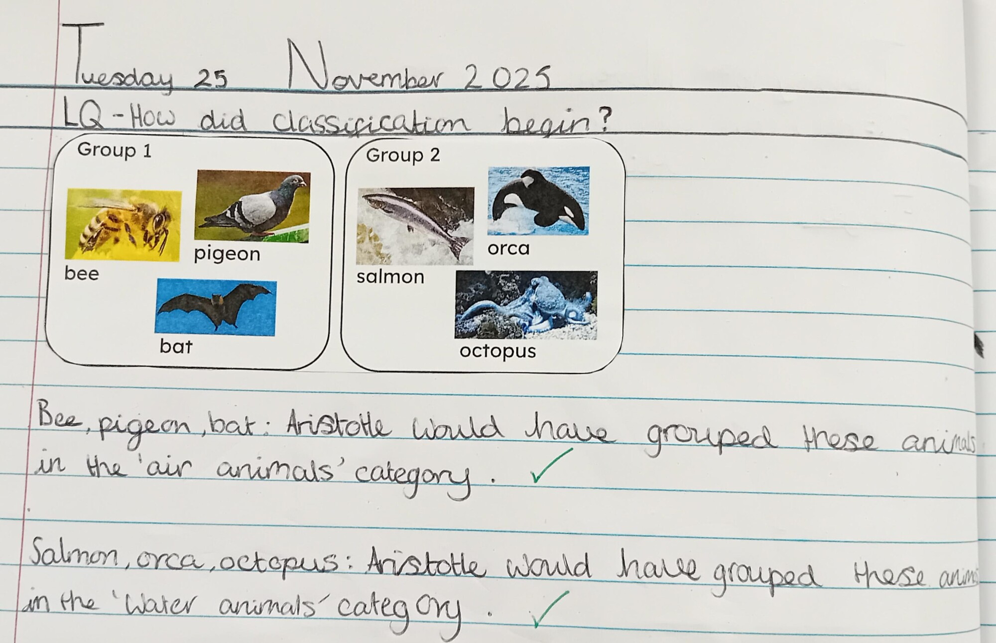 In PE on Monday, the children were practicing their skills of stacking cups and on Thursday our tag rugby training continued. Some of the children are showing a real passion and skillset in their rugby playing. For History, we thought about cause and consequence. Our focus was the invasion from the Persian Empire and how the Greeks fought them back. The children had to look at specific events and discuss what the cause of them were and then what the consequence was after it happened. PSHE was all about bullying and discrimination. The children had deep discussions and were given scenarios to think about. In Music, as well as continuing to learn how to play the trombone, we have been very busy practicing our Christmas Carols ready to perform to you on the 10th and 11th December. In Science, we concluded our unit on classification by going back in time to where it all began; Aristotle and Carl Linnaeus. We found out that because Aristotle did not have many resources, he only had three groups; land animals, water animals and air animals. After this Carl Linnaeus was able to use better resources and created six new groups; mammals, birds, fish, insects, worms and amphibians. Over time, as more discoveries were made and better equipment enabled scientists to make more accurate observations of living things, this system has been developed into the groups we use now to classify animals. Next week, we are looking forward to classifying insects at Oxford Museum of Natural History.