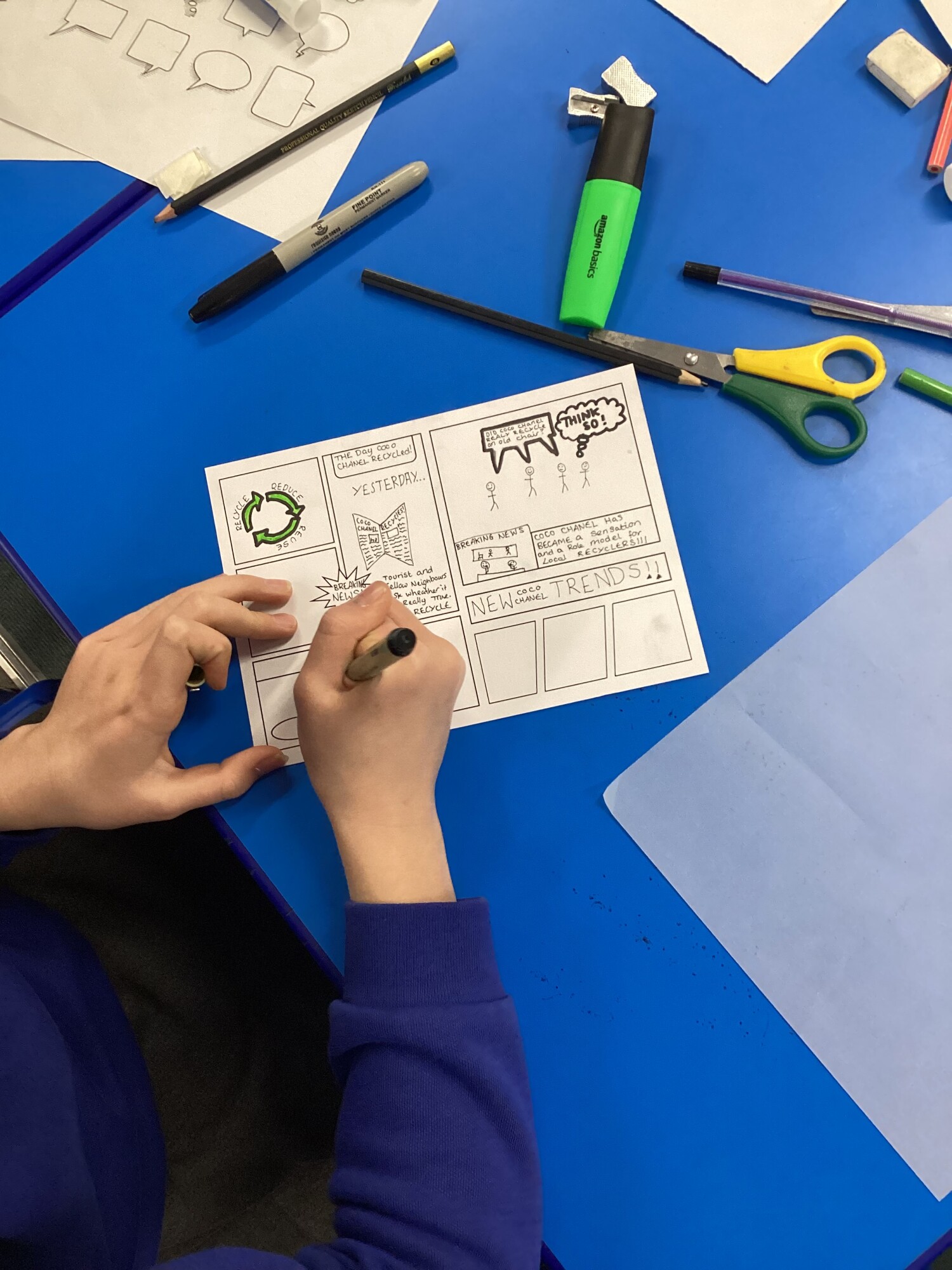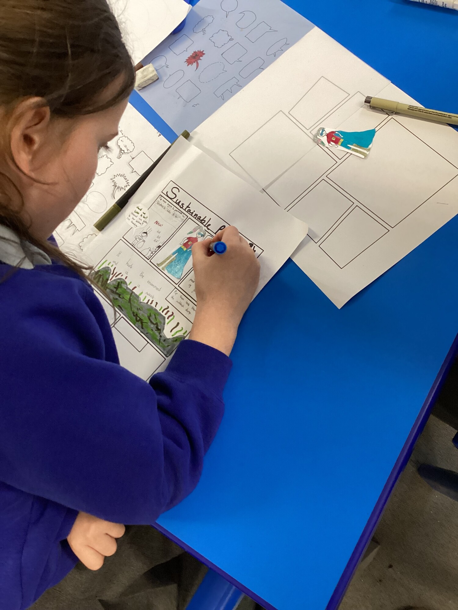 On Thursday afternoon, we had a group from WeSET visit to run a Comic Co Creation Sustainability workshop. We discussed renewable energy, using resources sustainably and choices we can make for the benefit of the environment and community around us. We were then tasked to come up with a comic - including a sustainable hero - in our groups. The collaboration was incredible and our visitors commented on how engaged everyone was, how knowledgeable they were and how well they worked together. The comics produced were fantastic and featured heroes such as Walter the World and Sustainable Pip. Look how well the finished projects came out!