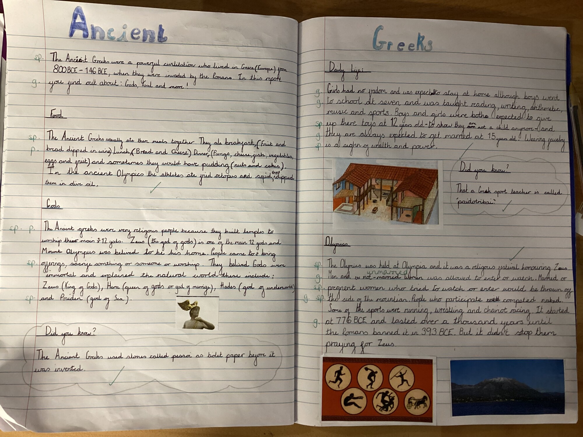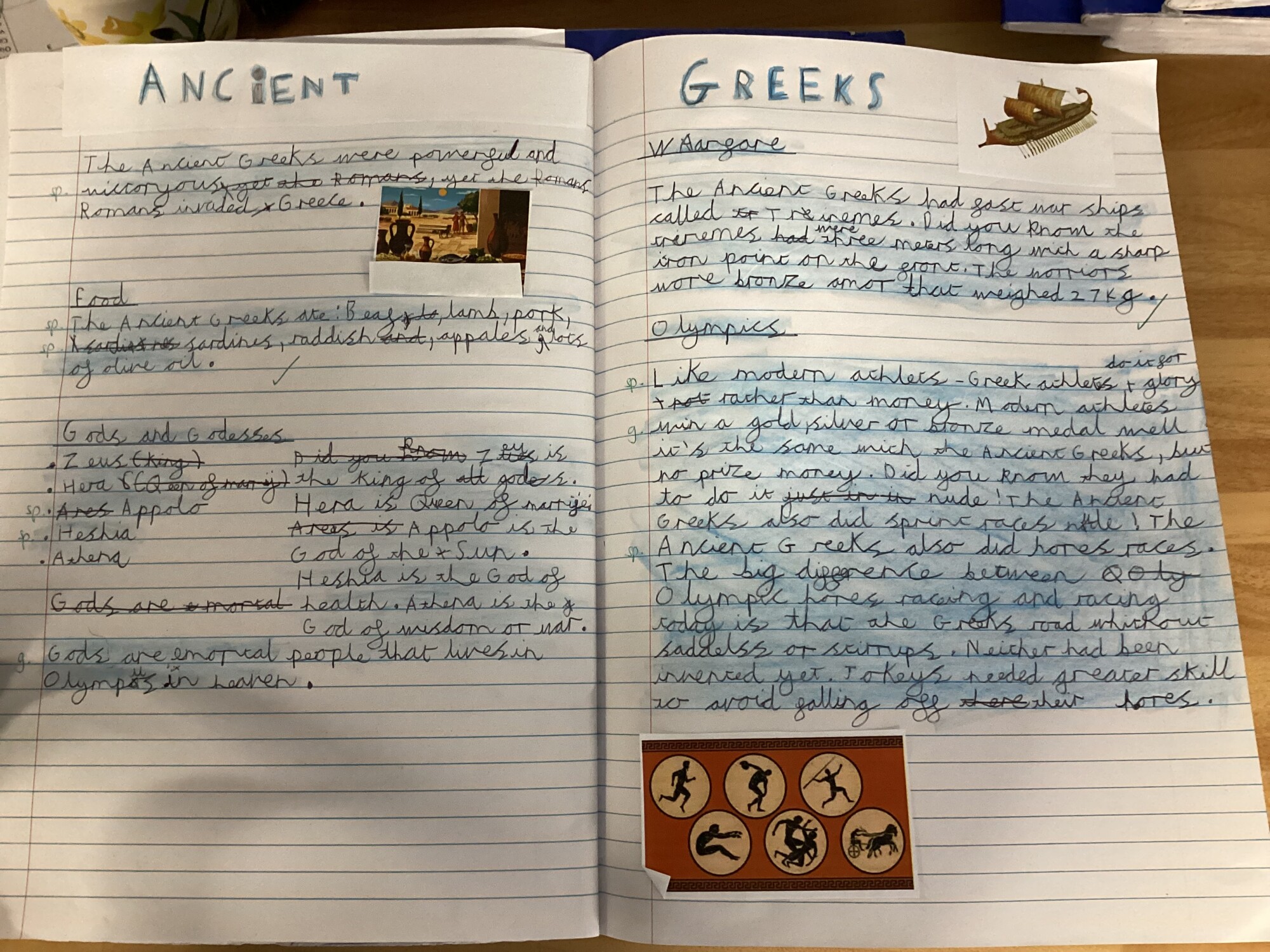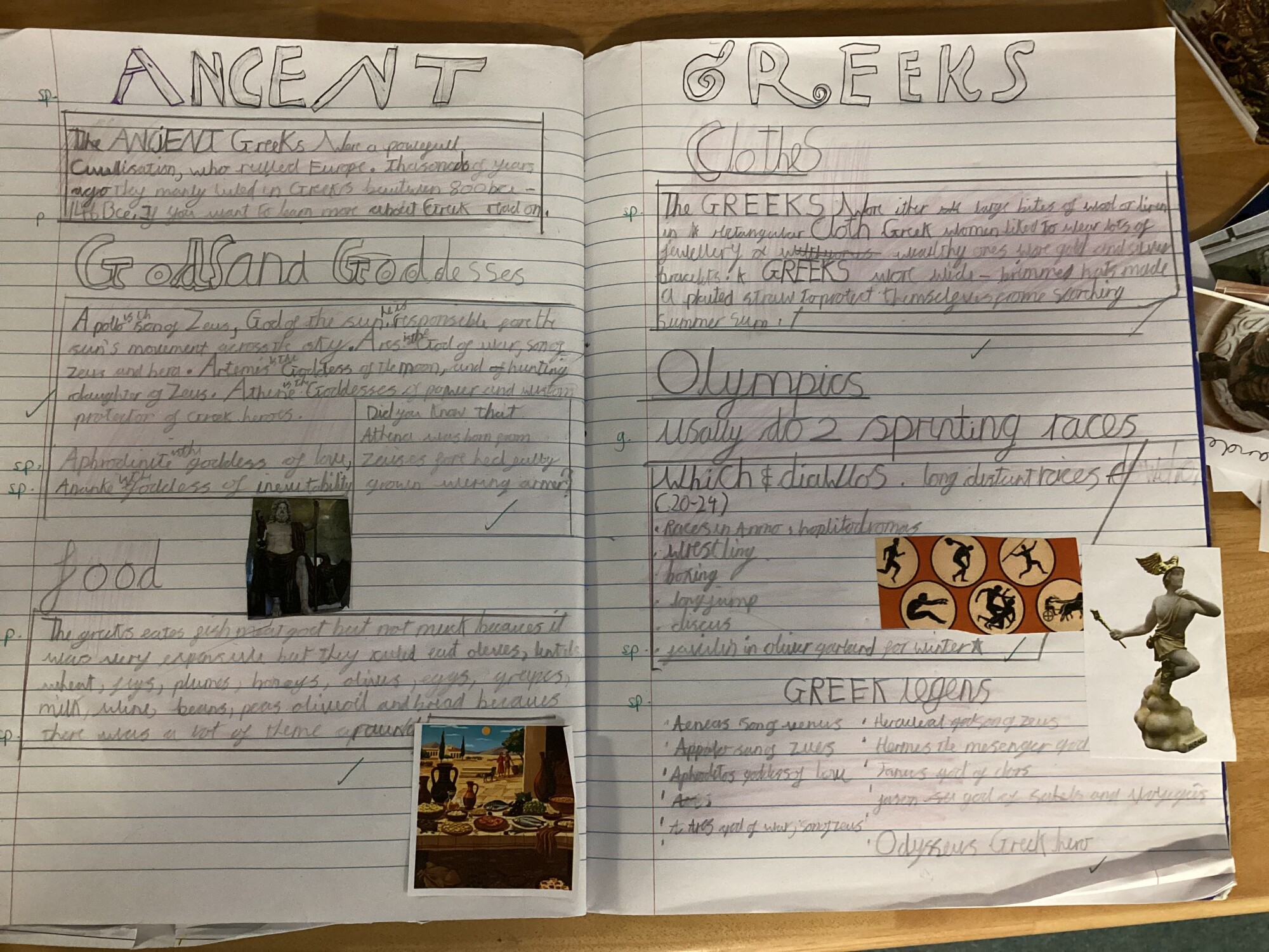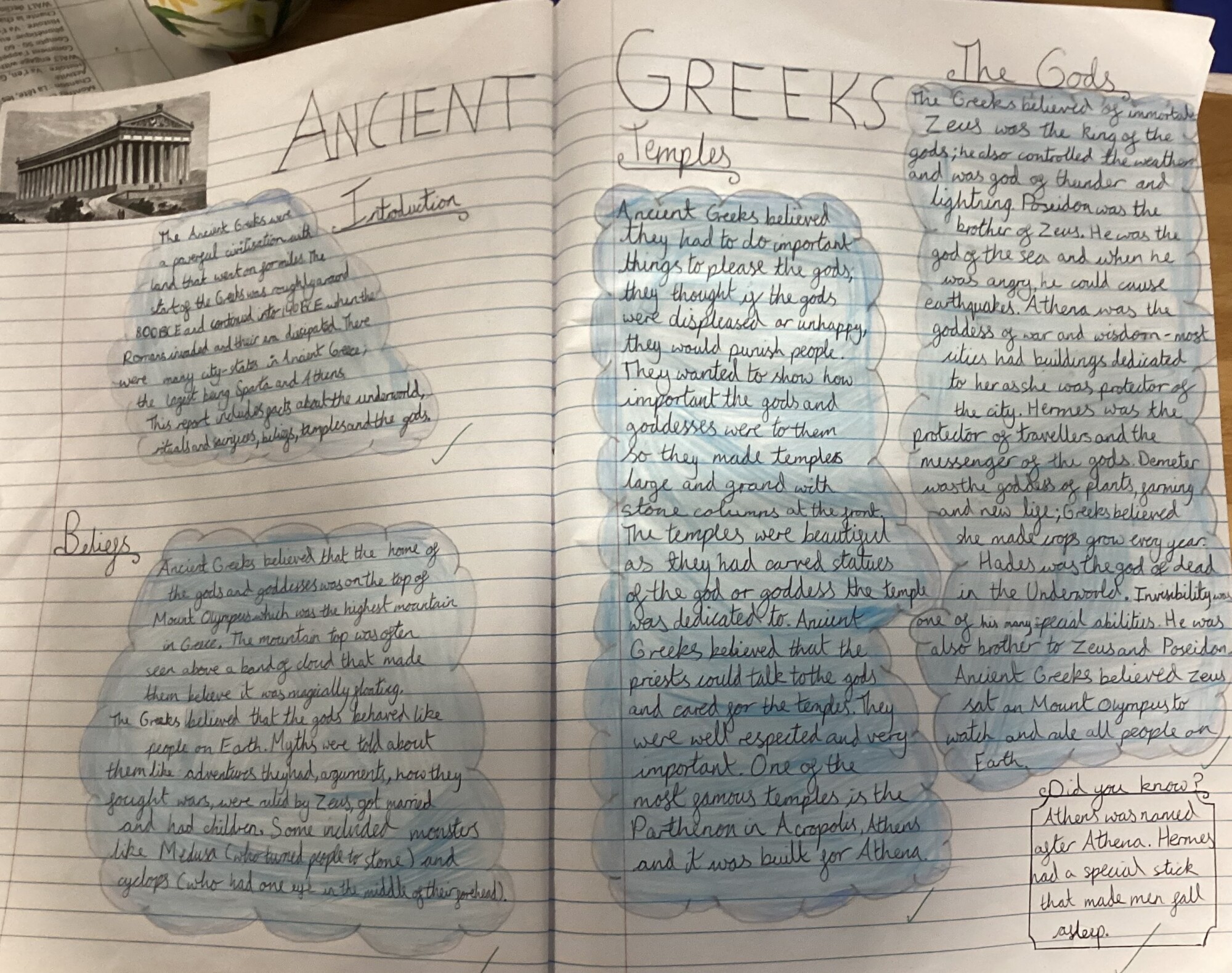 In English this week, we planned our own setting descriptions and then wrote them. We tried really hard to include senses descriptions, figurative language and adverbials. Our use of punctuation is definitely improving and the children are putting in a lot of effort. Once we had finished our setting descriptions, we moved our attention to writing our double page spread about the Ancient Greeks. We focused on research for a couple of lessons and how to take useful, efficient notes. Then we created informative, well-presented non-chronological reports. Next week, we will be working on creating an exciting plot for a narrative based on Malamander by Thomas Taylor.