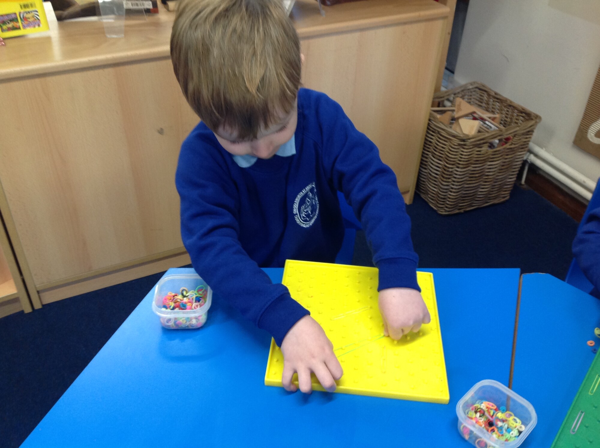 Have you ever had a loom band ‘ping’ out of your fingers? Well this week most of our EYFS Robins have experienced just that. Our fine motor activity this week involved stretching the loom band across the geoboard pegs. Most loom bands stayed on the board with only the odd one or two flying across the classroom (followed by lots of giggles).
