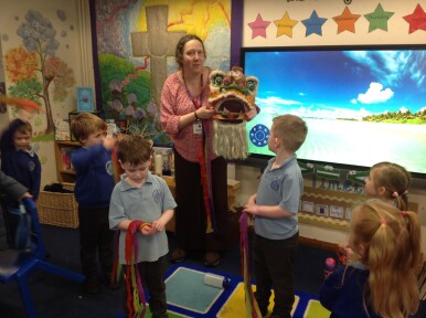 After half term, on our first Wednesday back, we will be learning about the Lunar New Year and will be tasting foods such as noodles and spring rolls in our Chinese banquet. During Pantomimus this week, Danielle gave us a sneak preview of the Chinese Dragon dance that Robins have been learning, it was wonderful seeing all the colourful ribbons being swayed back and forth in time with the music.