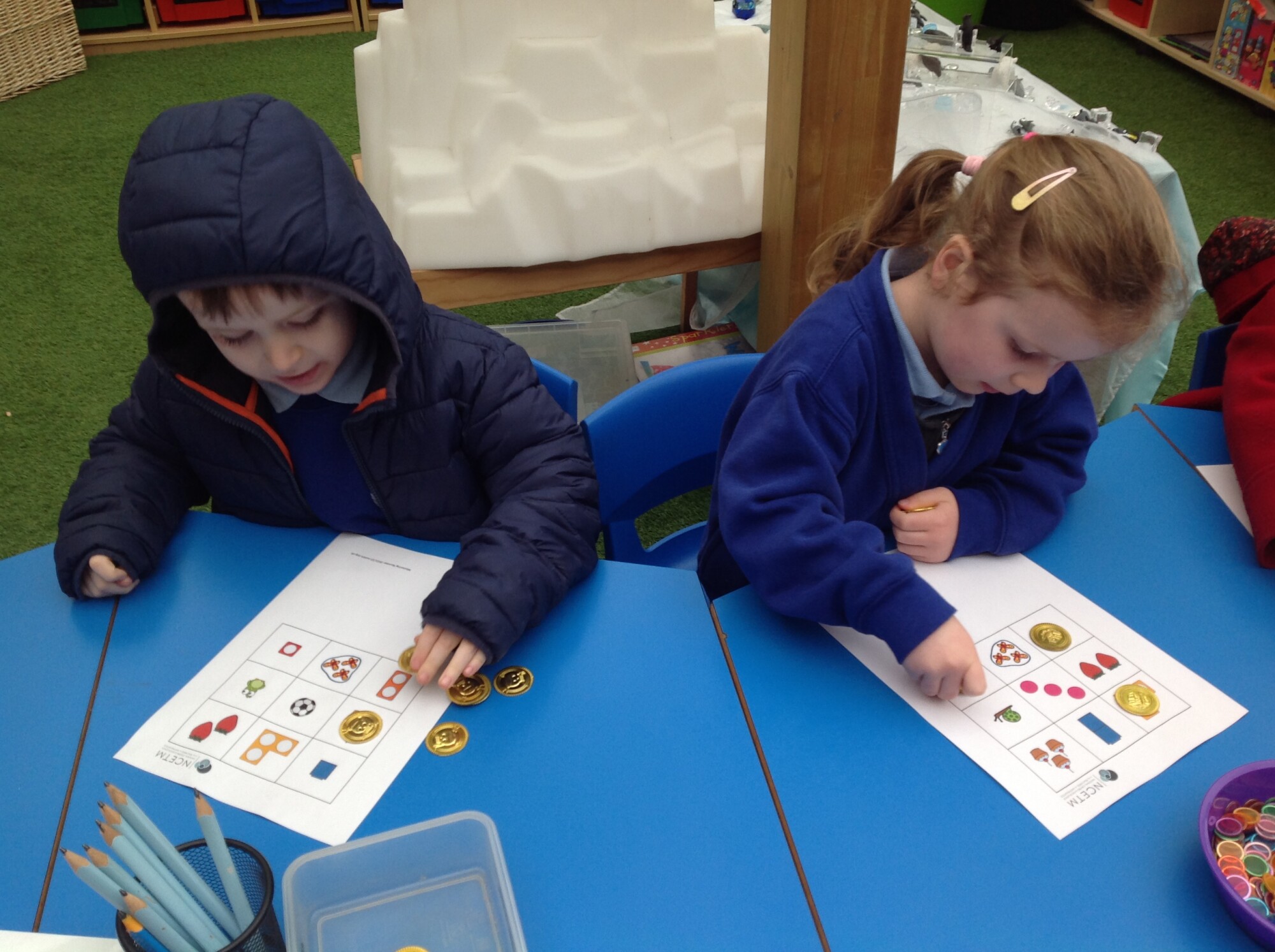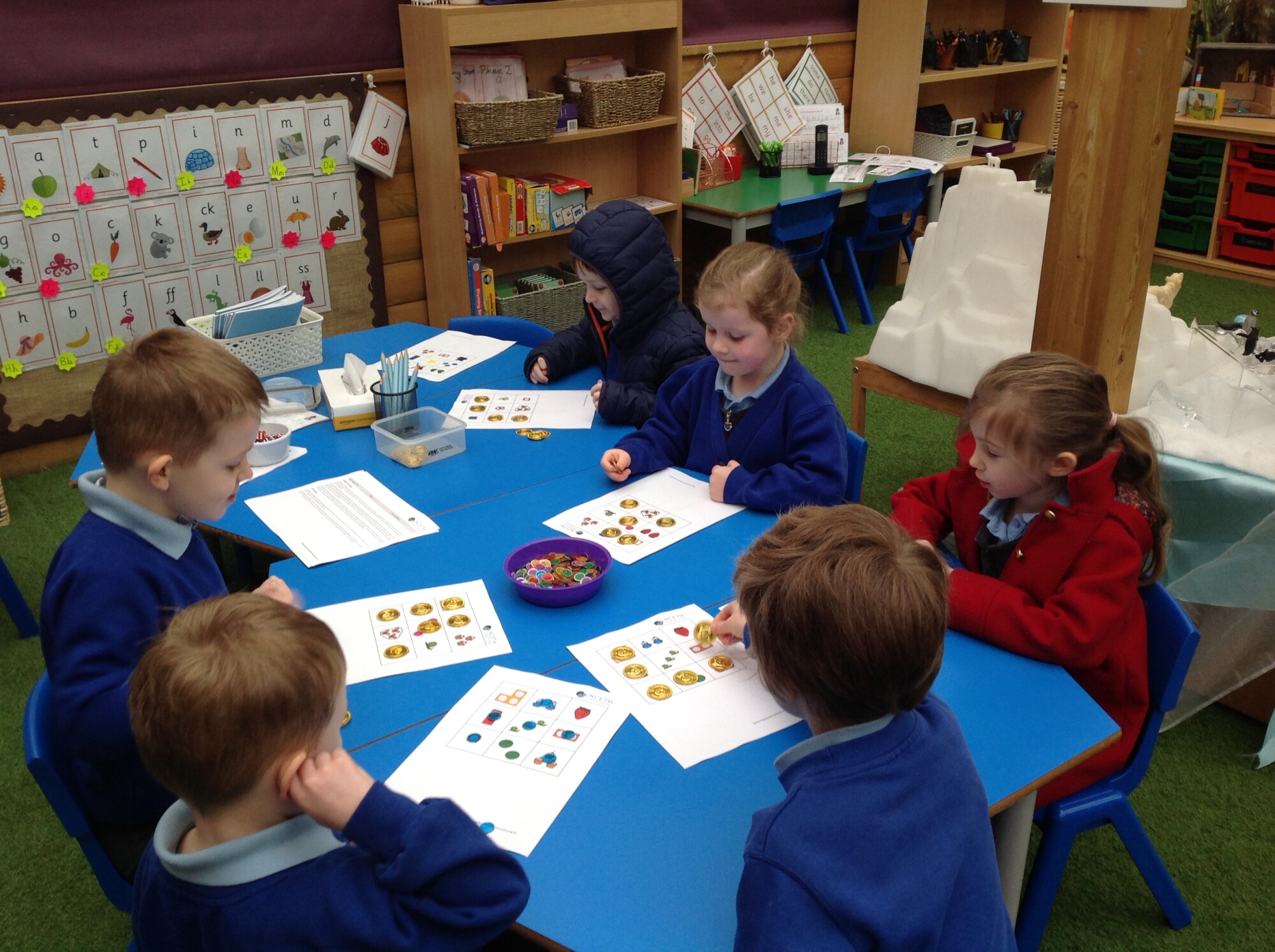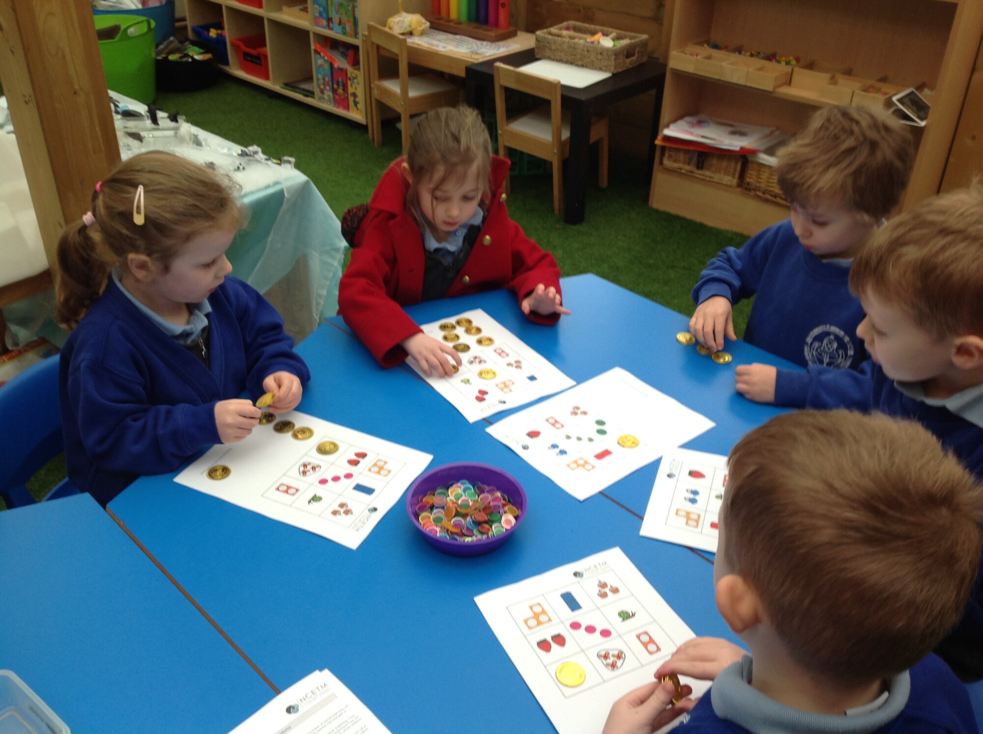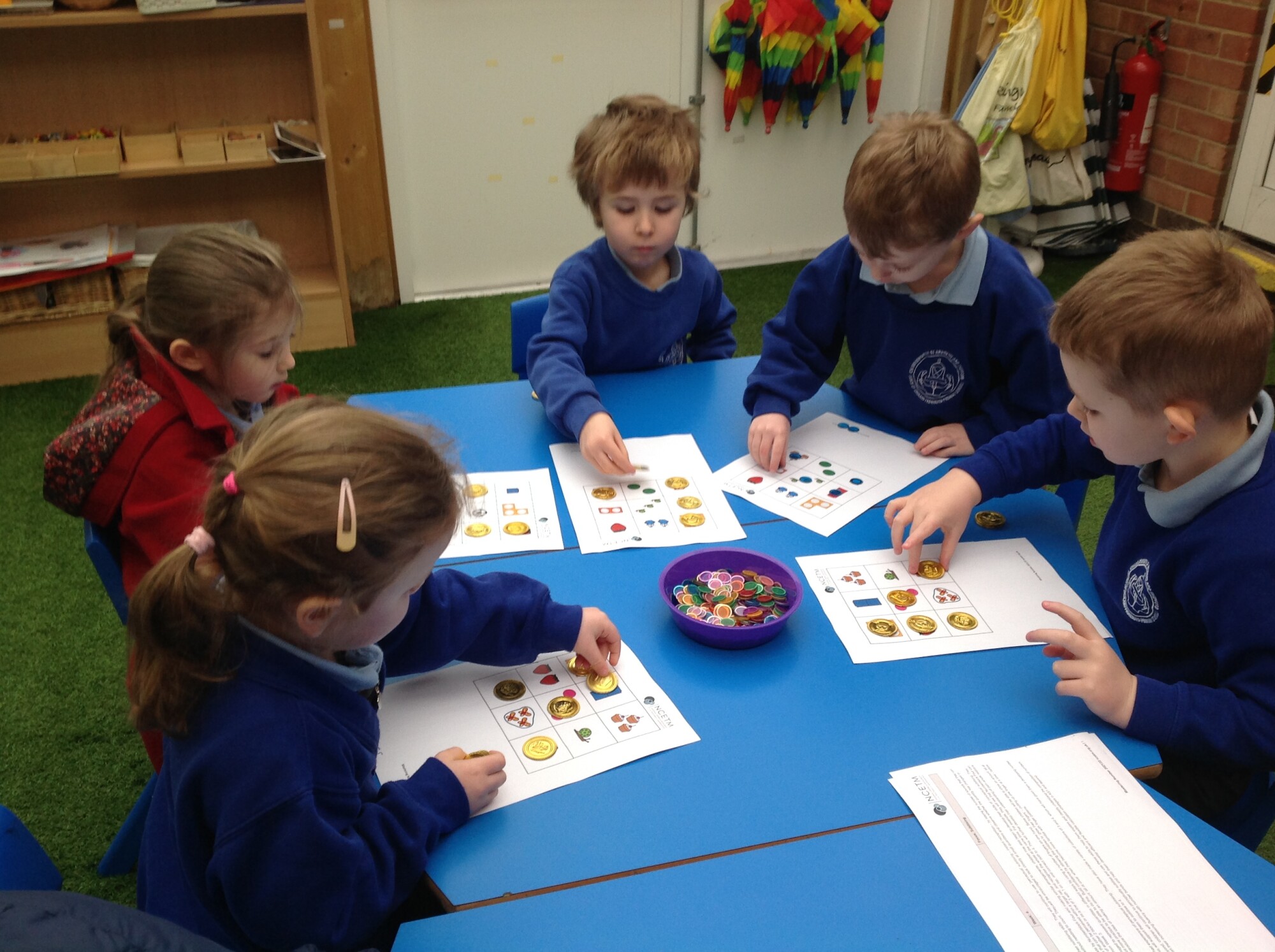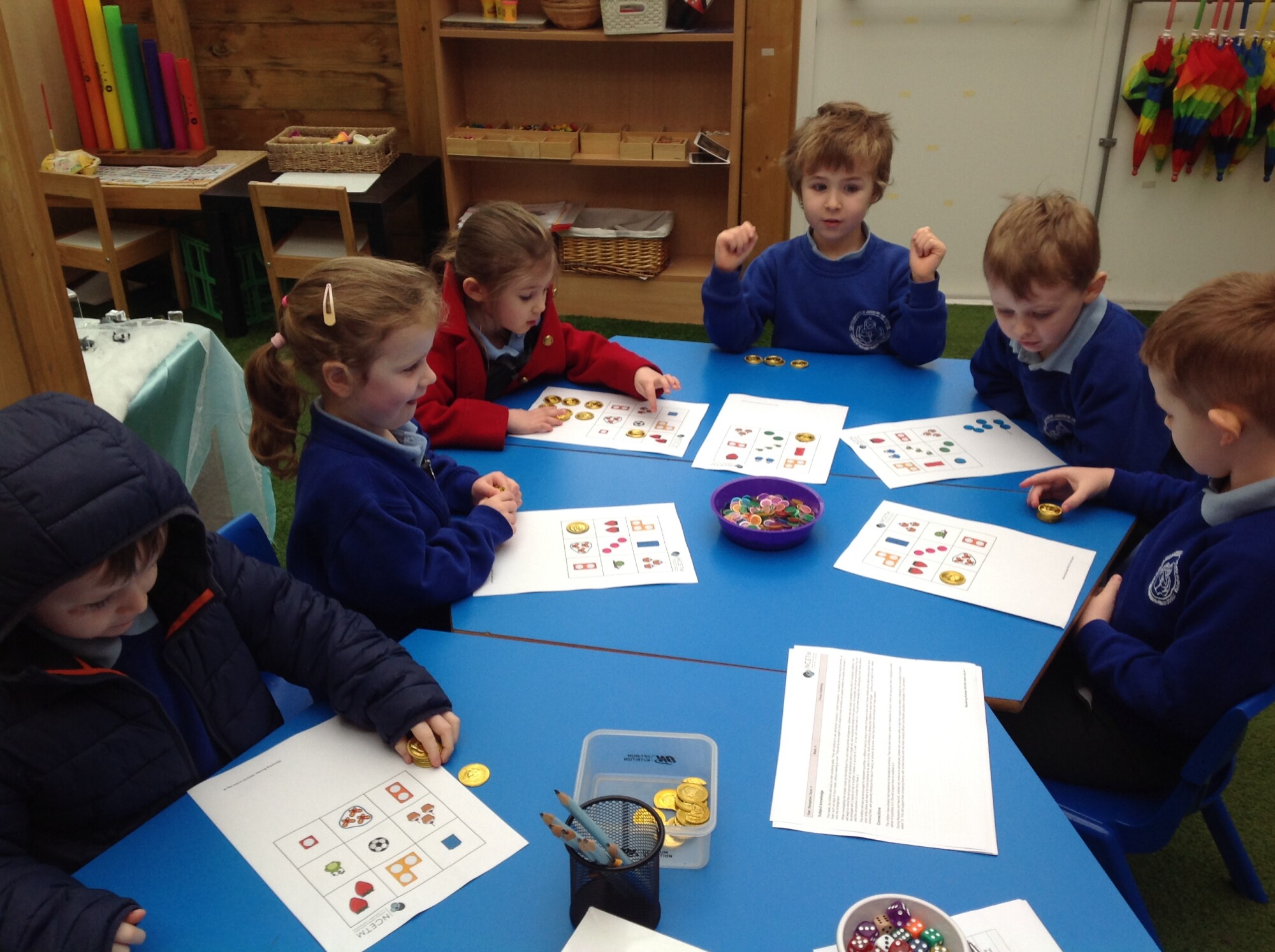 We also revisited 'subitising', recognising an amount without counting. We played a matching Bingo game, rolling the dice and seeing if they had that amount on their Bingo board. It was quite fast as there was no counting involved.