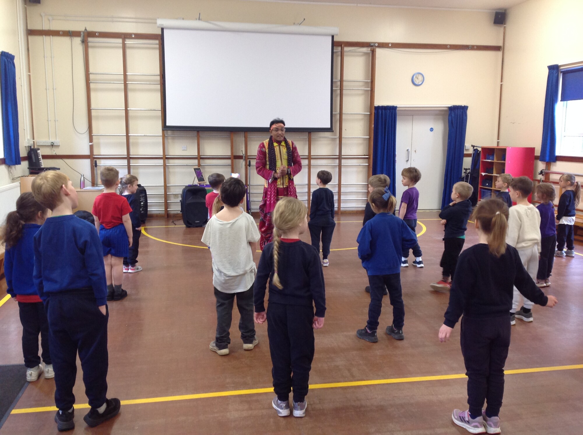 On Tuesday, all our Holi learning was brought to life. Kalpesh introduced himself and introduced us to some traditional Indian Dance. We were having a great time. All was going well.