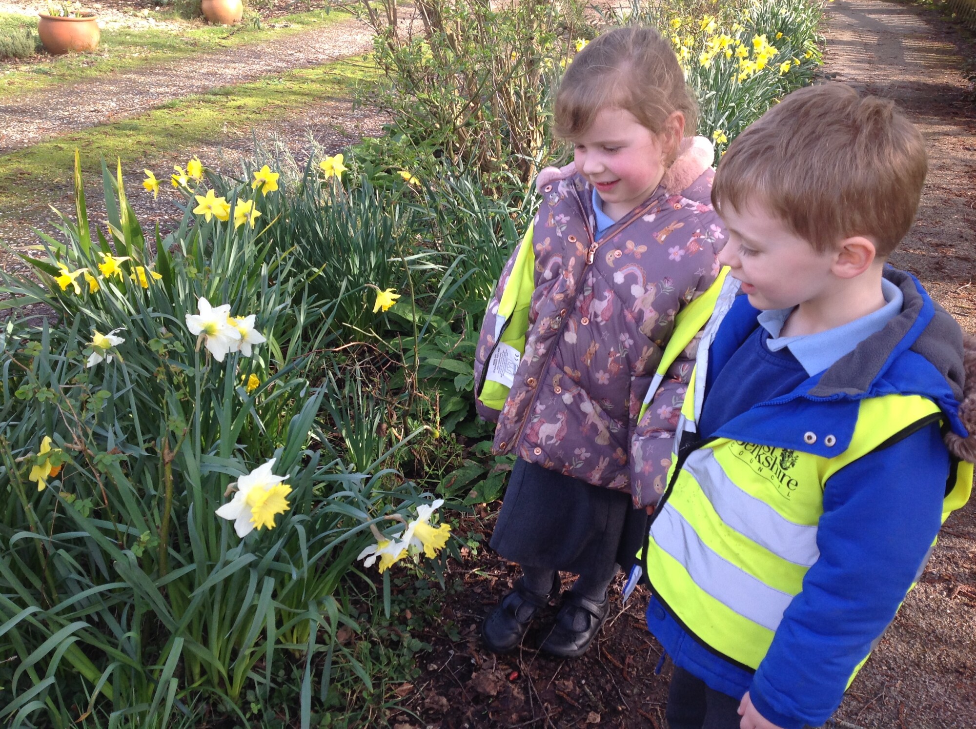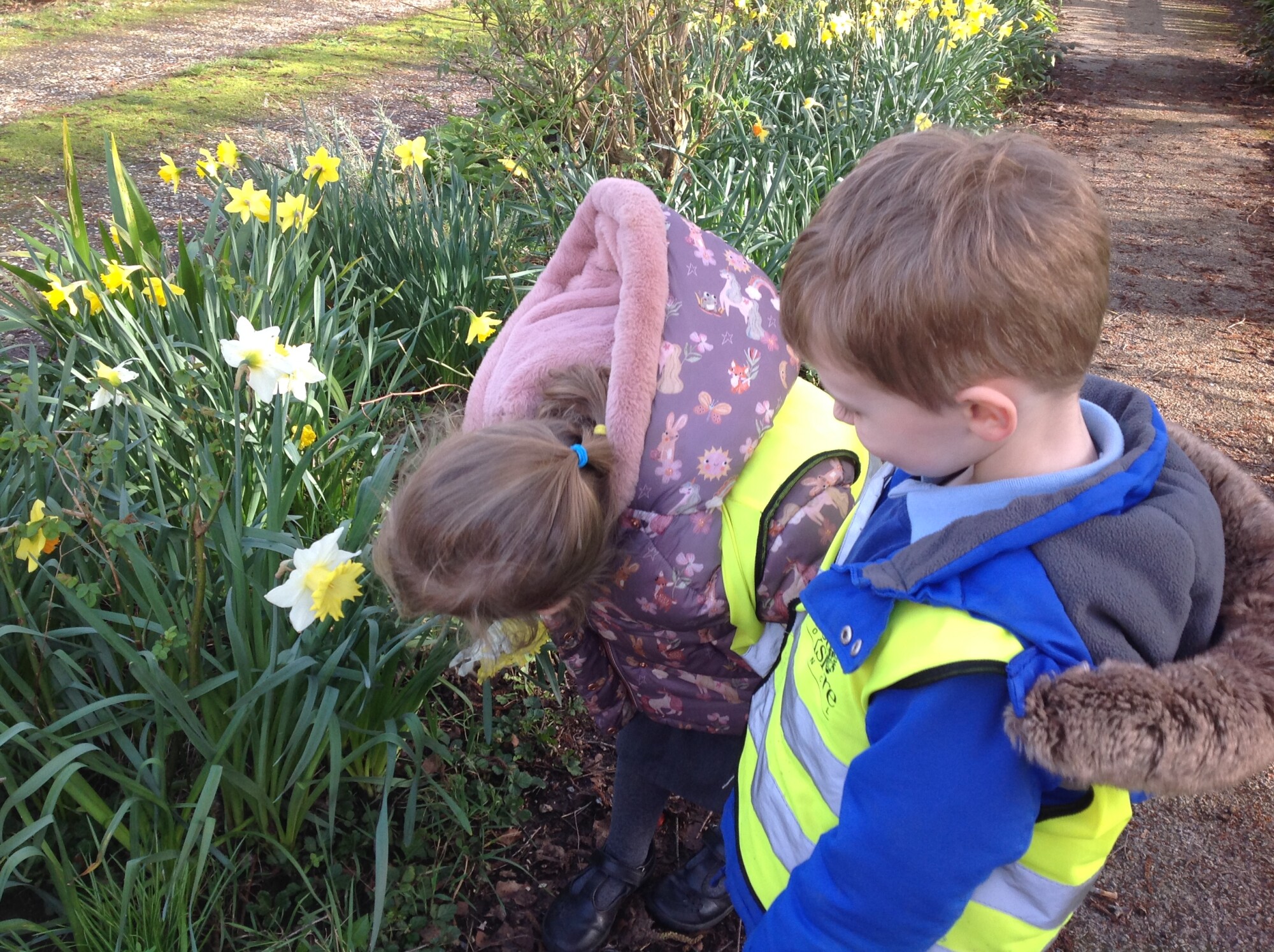 On Wednesday, we headed out into the village in search of signs of Spring. We took our time to look at the plant and wildlife in the village and had lots of discussions about the ducks, the bug hotel and its many residents, the buds on the bushes and daffodils - yes, we could say with confidence that Spring is almost here.