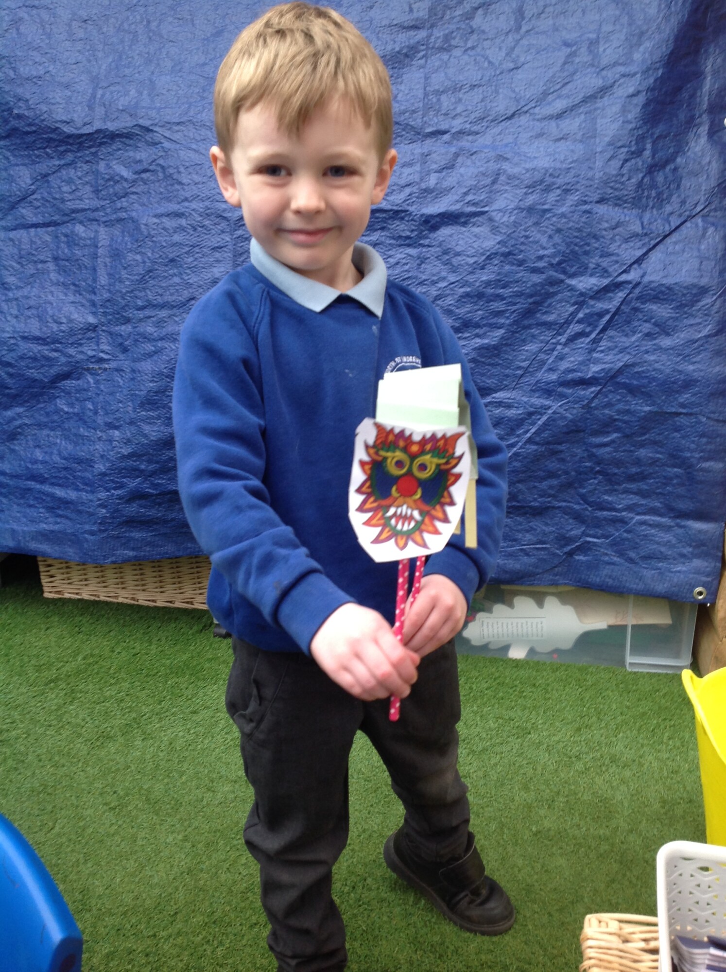 In Art, the children started to think about the festival of the Chinese New Year. Linked with this the children made their own puppet dragons. They had some imaginative ideas, especially when they wanted to play with the dragons after they had made them! They used lots of skills such as cutting and sticking and folding paper. They are doing extremely well using a pair of scissors!