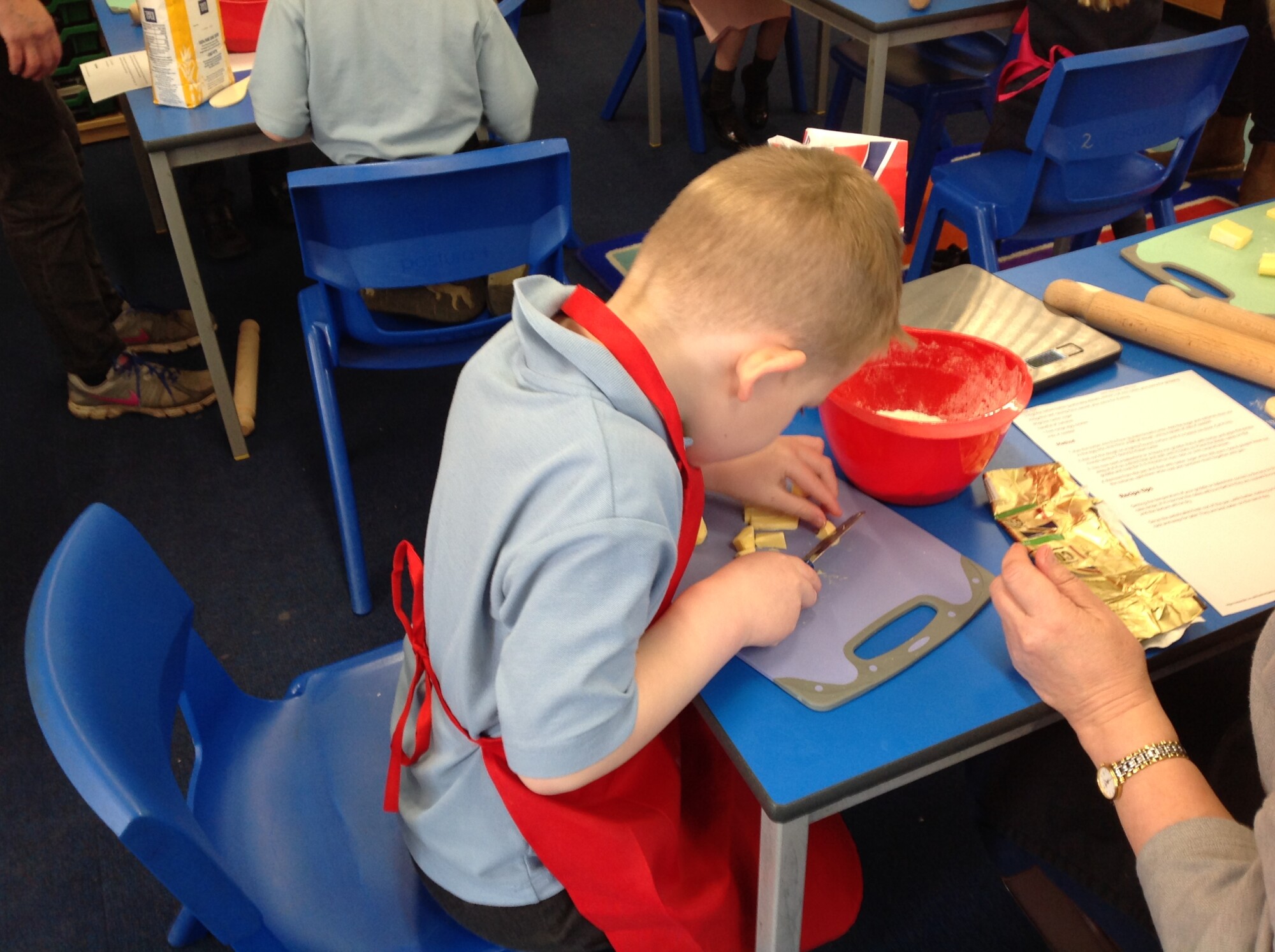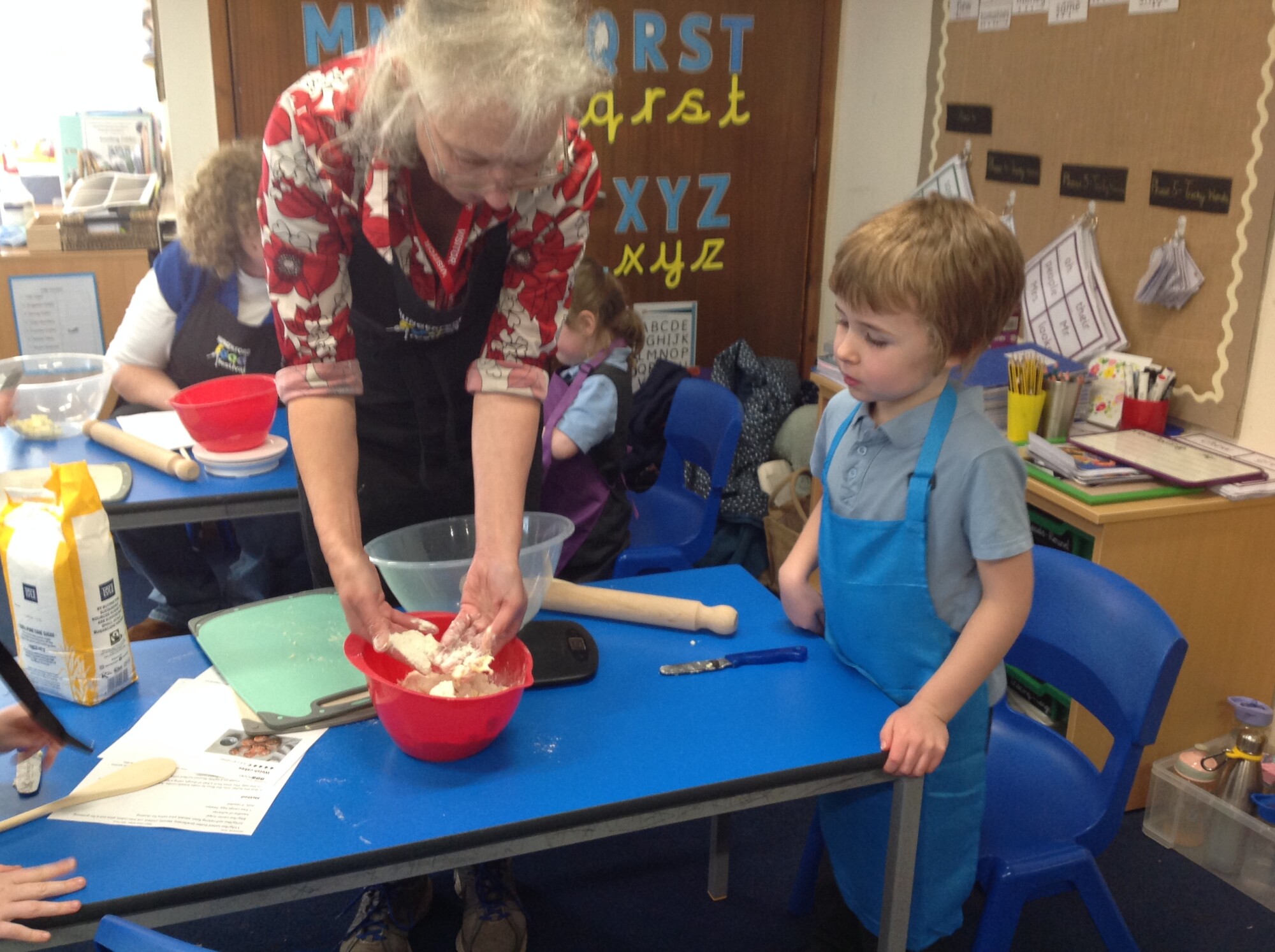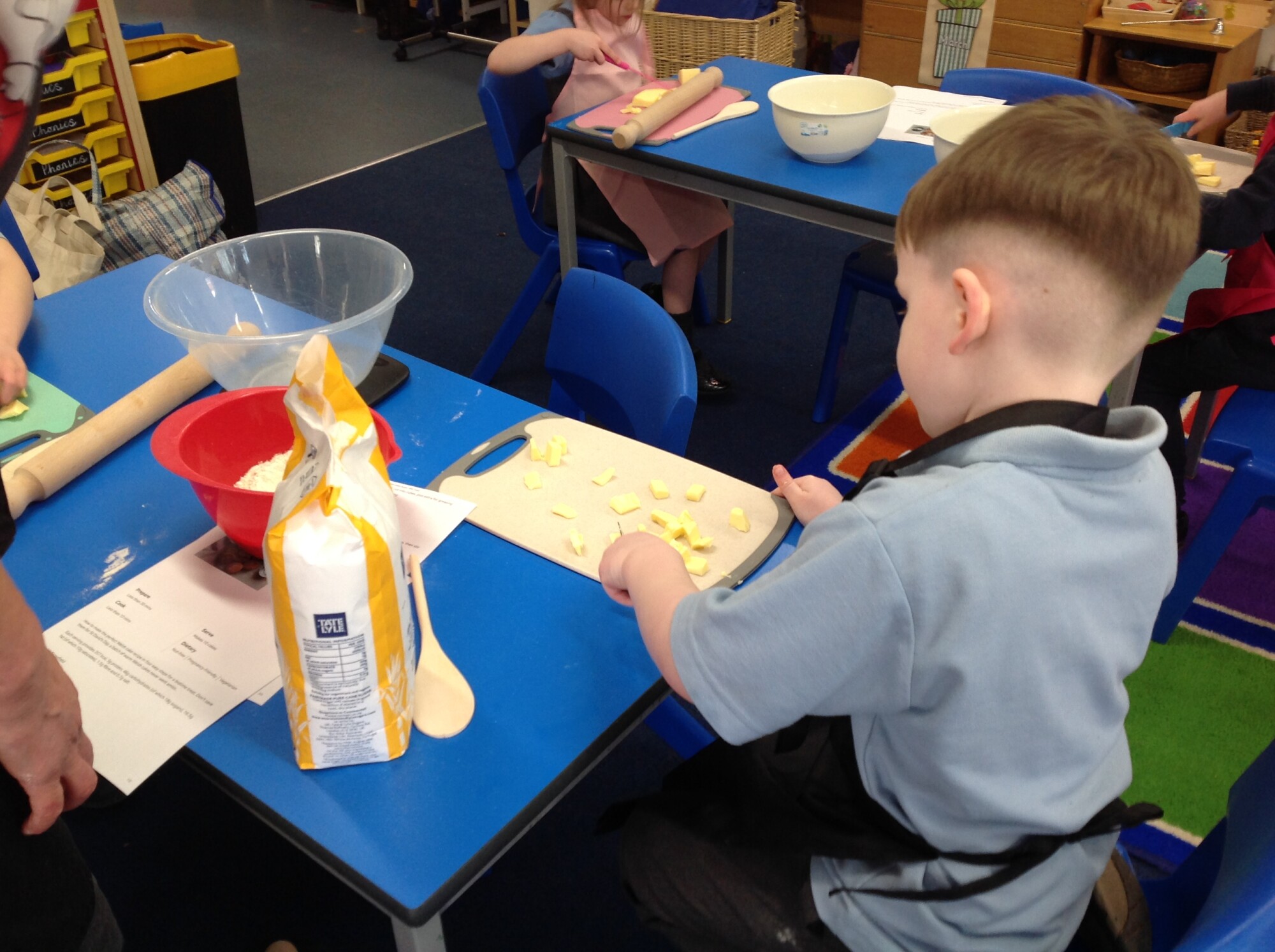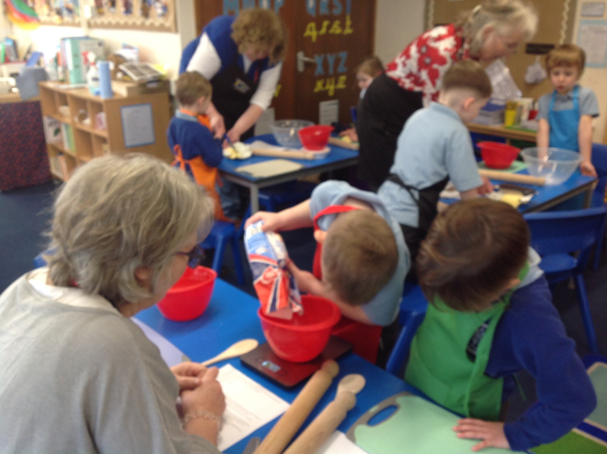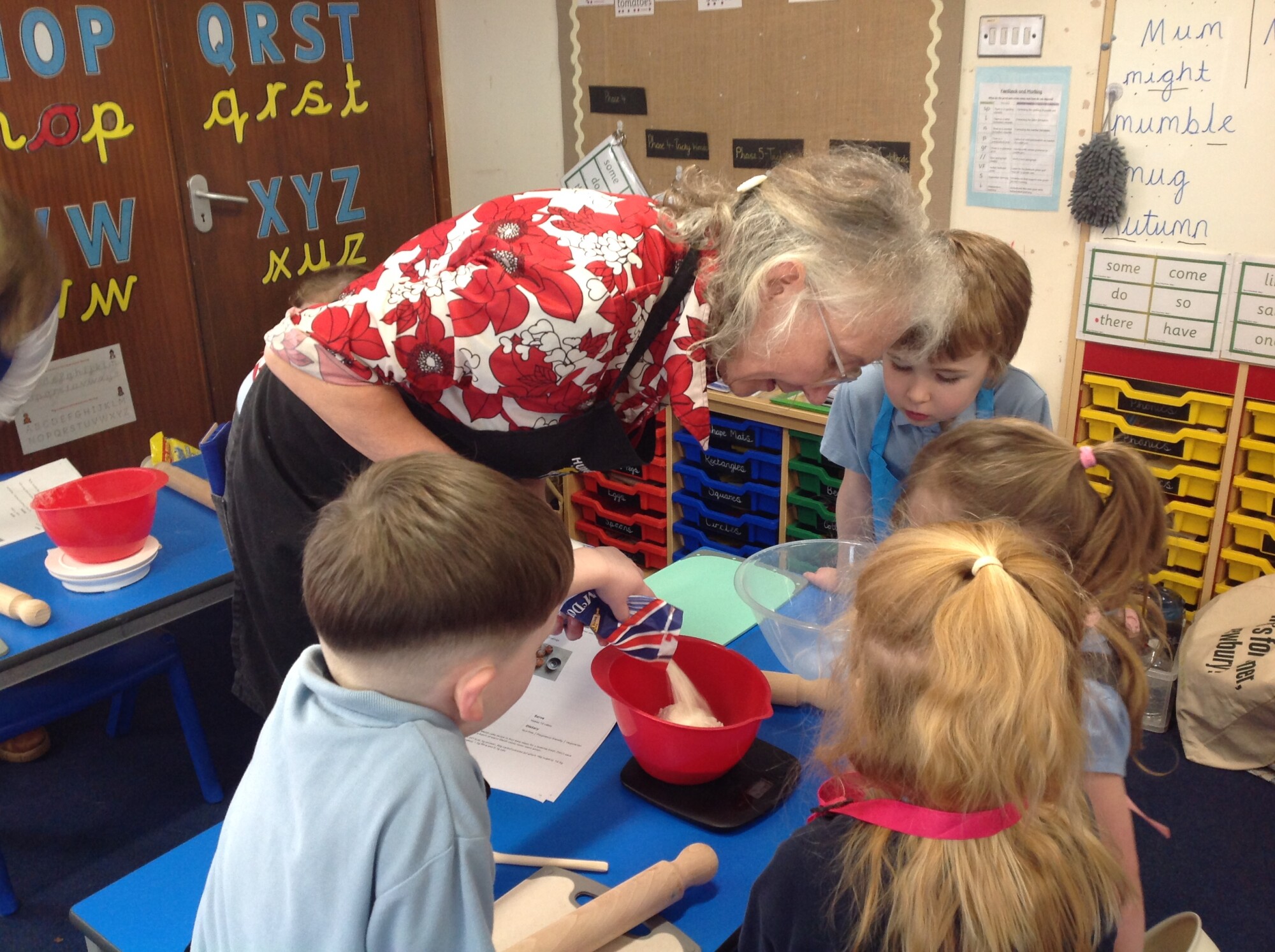 On Wednesday, we engaged in our usual phonics and Maths in the morning, so in the afternoon we were ready for some 'hand on learning'. Wednesday is our Pantomimus day and we were really looking forward to seeing Danielle the music teacher and heading into the hall for singing and dancing and all things music. Before that though, we welcomed Penny and her team from Hungerford Food Community who were helping us to make Welsh cakes. We were weighing, rubbing, cutting, mixing, rolling, squashing, cooking and the best part - eating! The photos tell it all (well not exactly all - they don't tell us about the wonderful small that filled the room and they don't tell us about the mess we left on the carpet - all for a very good cause though), the children were fully engaged - they were absolutely delightful and it was one of the best cooking afternoons we have had so far. Huge thank you to Penny and team for all their support - we can't wait to see you back soon when you bring the smoothie bike!