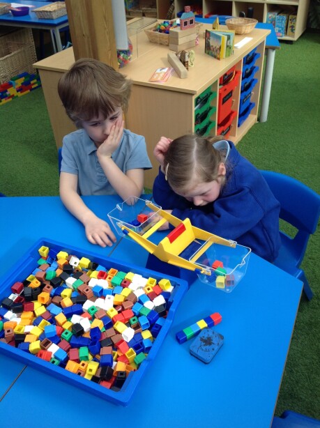 This week in maths, the children were consolidating their learning about mass and weighing. The children used balance scales and had a go at trying to make the scales balance. The children tried hard to remember that when weighing an object, you don't put lots of cubes in the containers all at once. You have the object being weighed on one side of the scales and on the other side you put the cubes in one at a time until the scales balance. Once the scales balance, you know the mass of your object being weighed by counting the number of cubes. The heavier your object, the more cubes it will weigh.