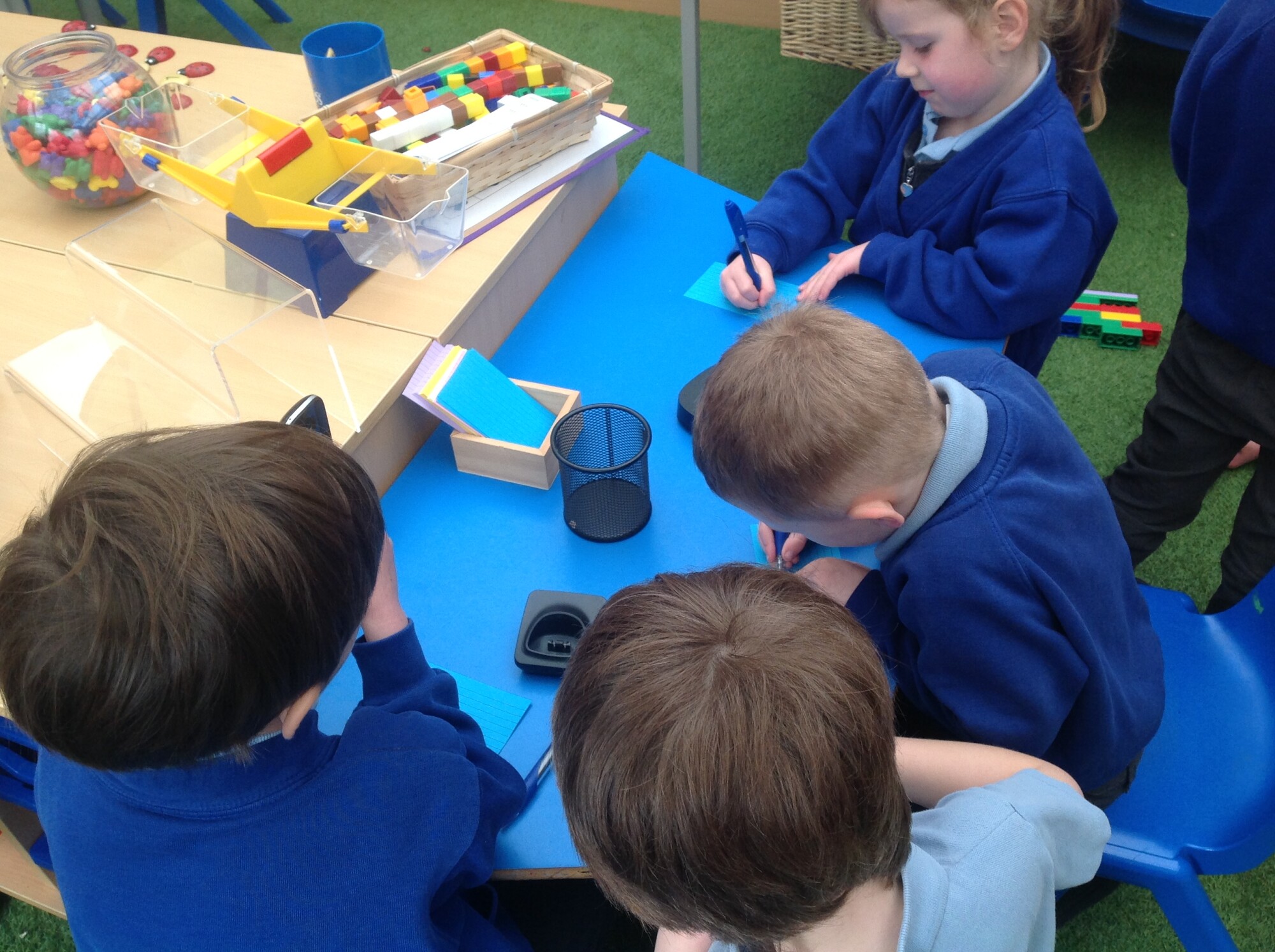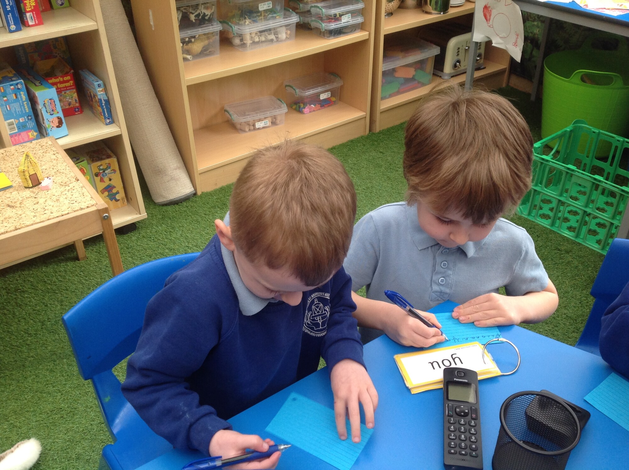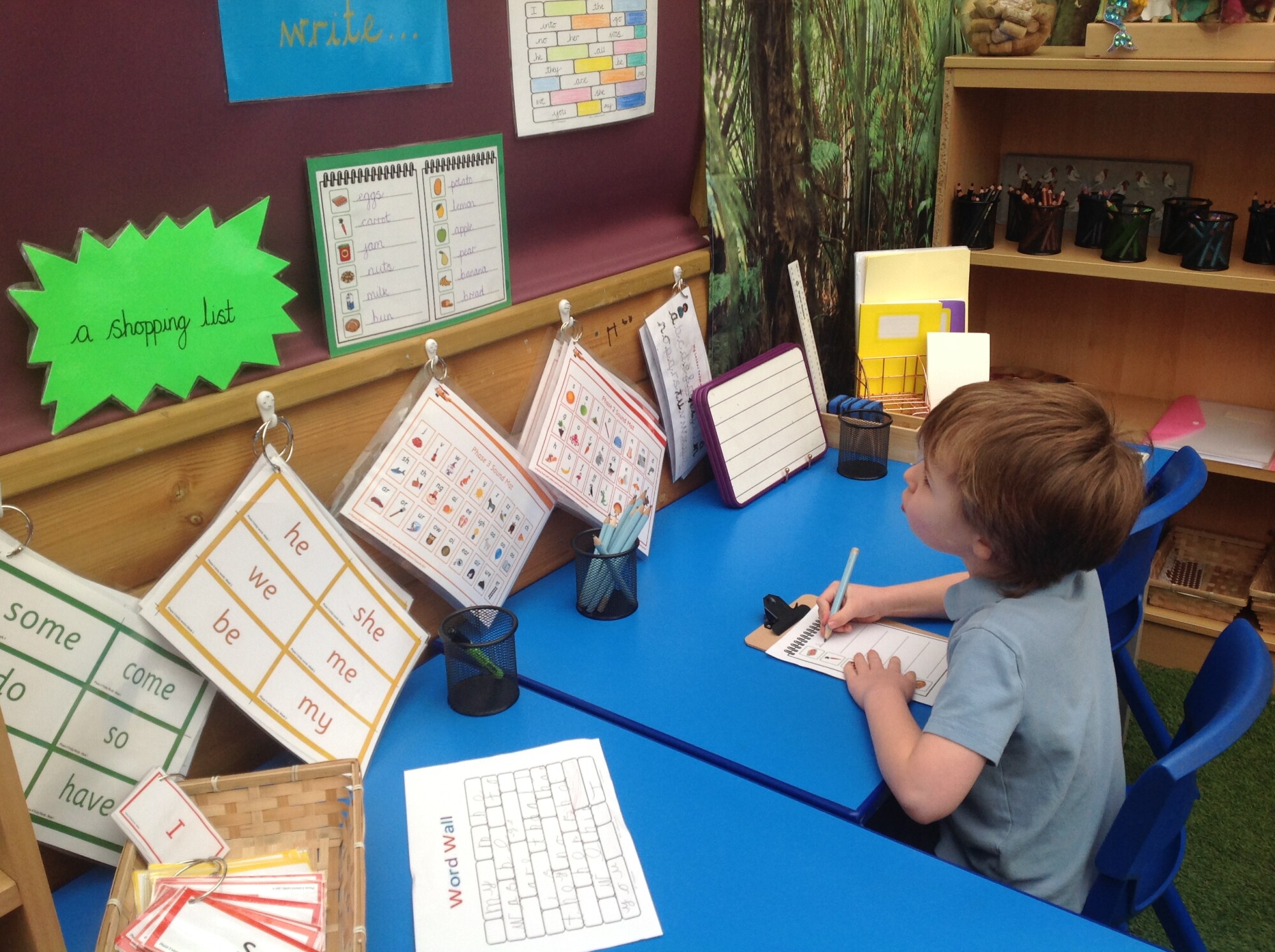 We started off writing shopping lists and then moved on to 'the school office' - just something as simple as a telephone and some pieces of paper and they were off! The phone was ringing non stop and the messages were coming in thick and fast - and they were all being written down (such a great way to get the children writing). The 'telephone conversations' were hilarious - children were being recorded as being 'poorly' (mainly chicken pox from what I could overhear) and were offered advice such as keeping the children as clean and germ free as possible - only washing the children in hair conditioner and keeping them off school for 6 months! What pleased me the most though, was the vocabulary, the sentence structure, the sharing and turn taking of the phone and just the pure enjoyment and engagement of all the children.