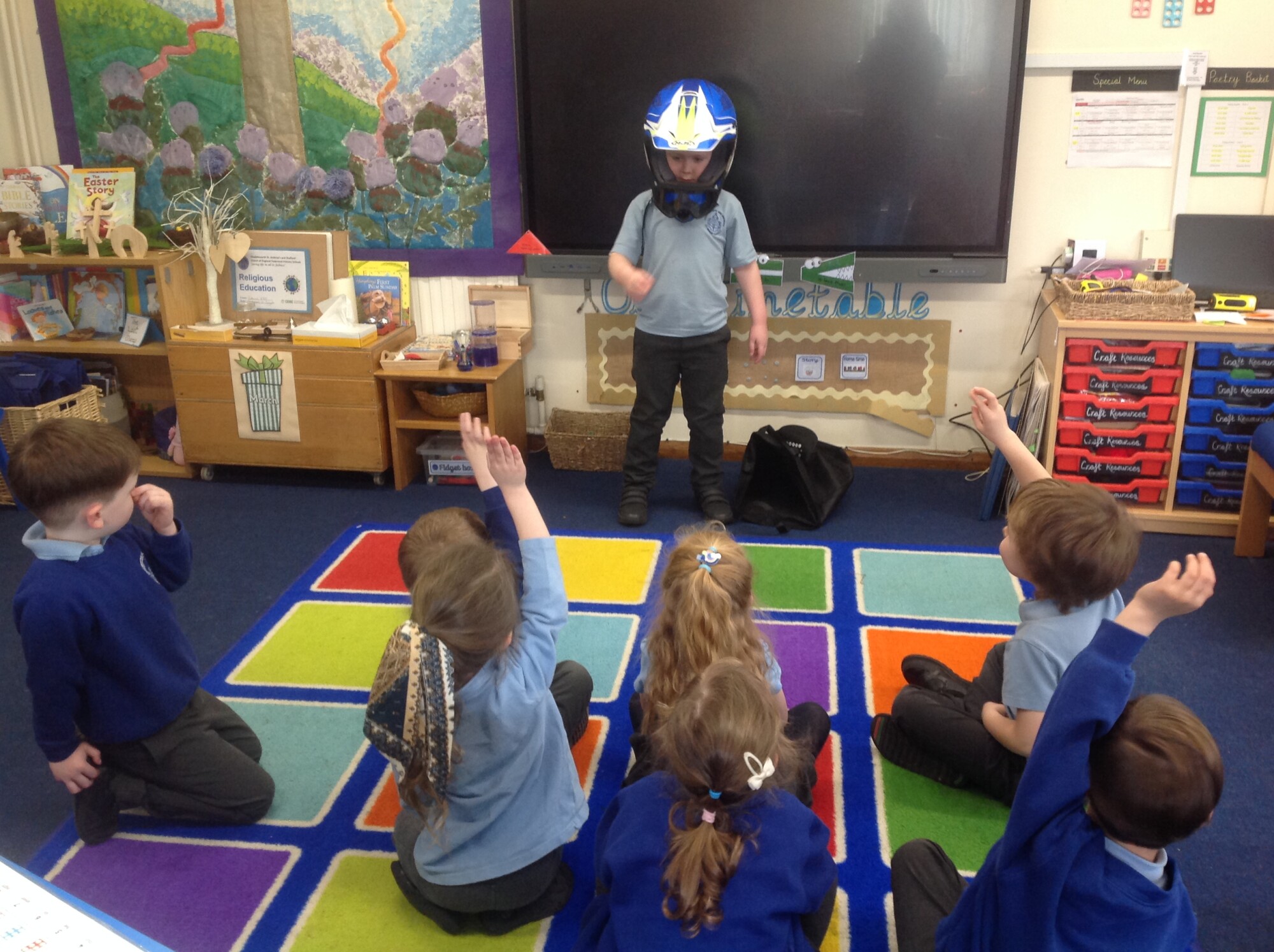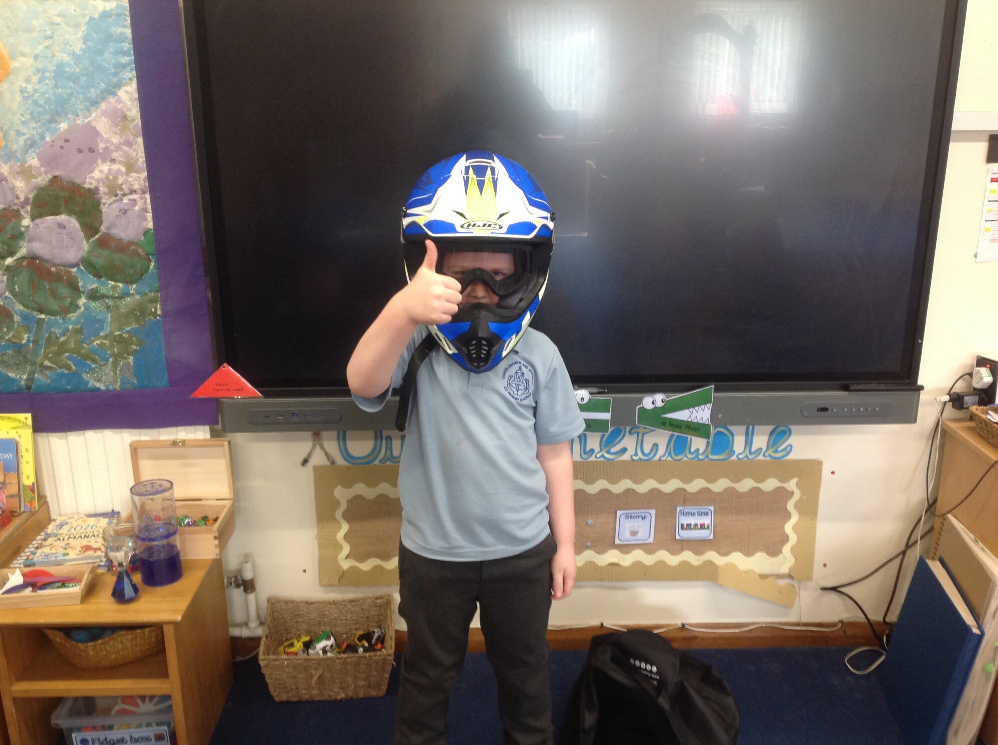 Of course every Monday comes with added excitement - Show and Tell. This week we experienced another WOW moment. We were introduced to the world of motor cross. We watched a video clip and had so many questions, we even got to touch the actual helmet. Excitement levels off the scale!