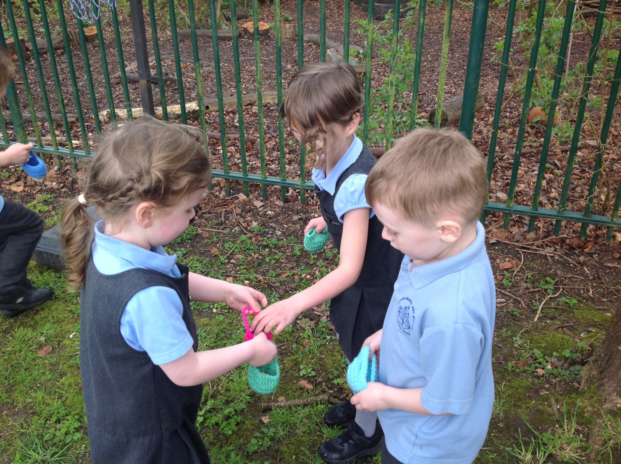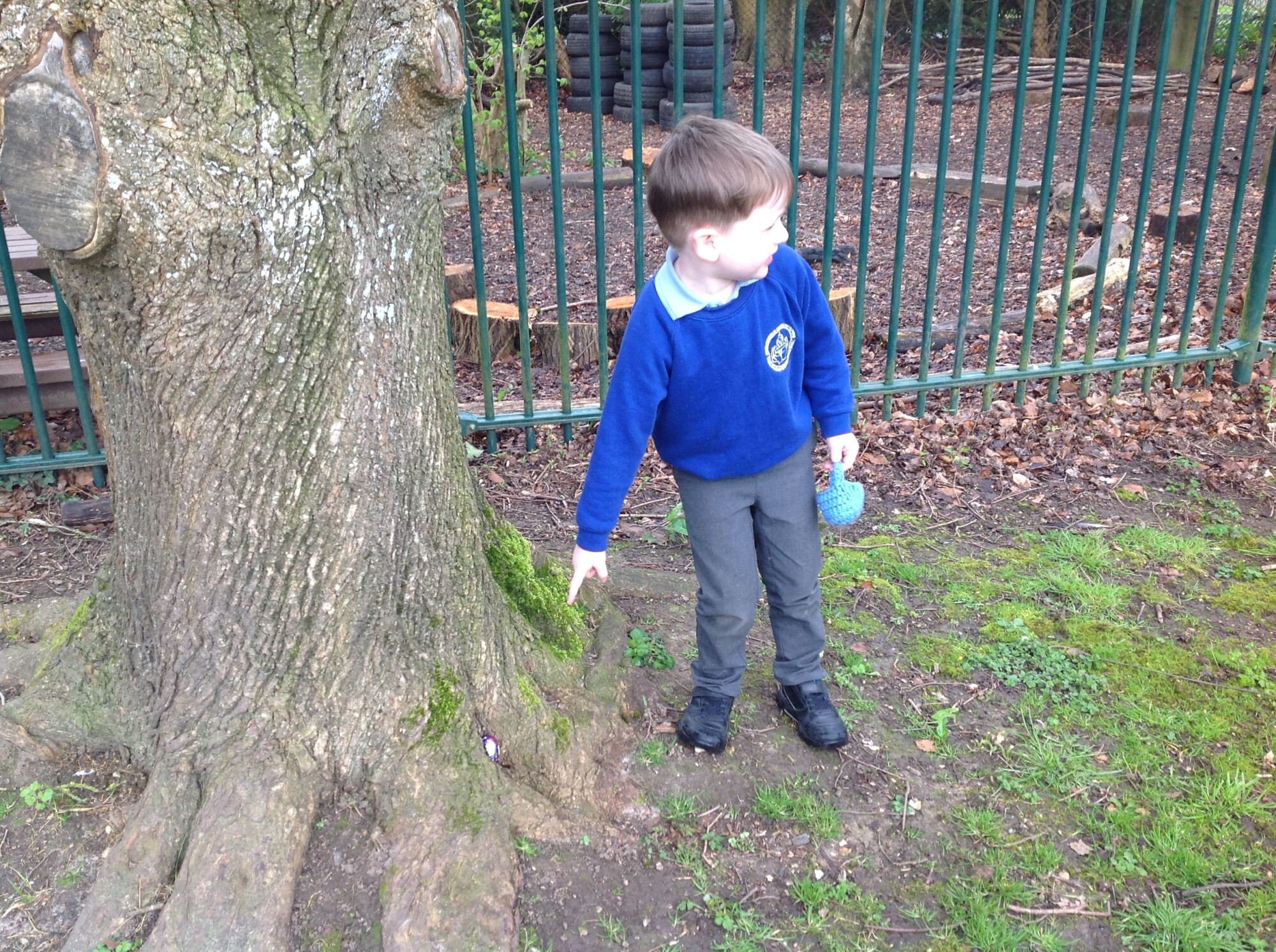 Hold on.....was that a flash of white fur we spotted out of the window! It absolutely was - yes on Friday we saw the Easter bunny and she had hidden Easter Eggs all over the place for us to find. Mrs. Bell had crocheted baskets for everyone and off they went, basket in hand, not a care in the world other than to find the egg - exactly as life should be at this age.
